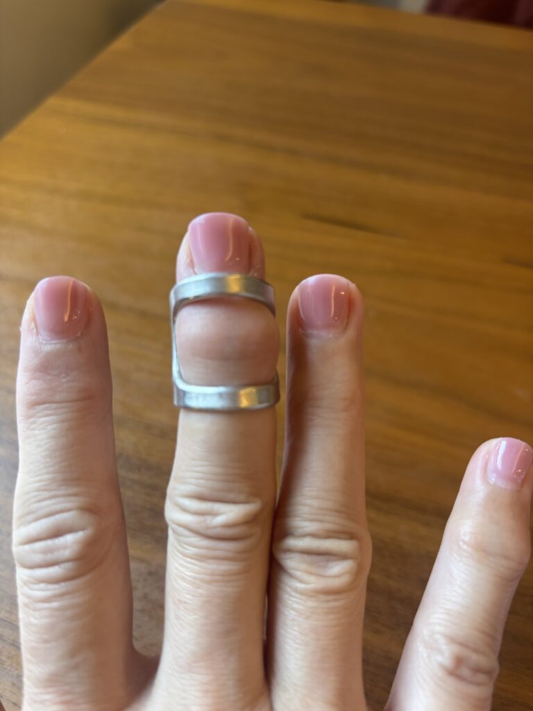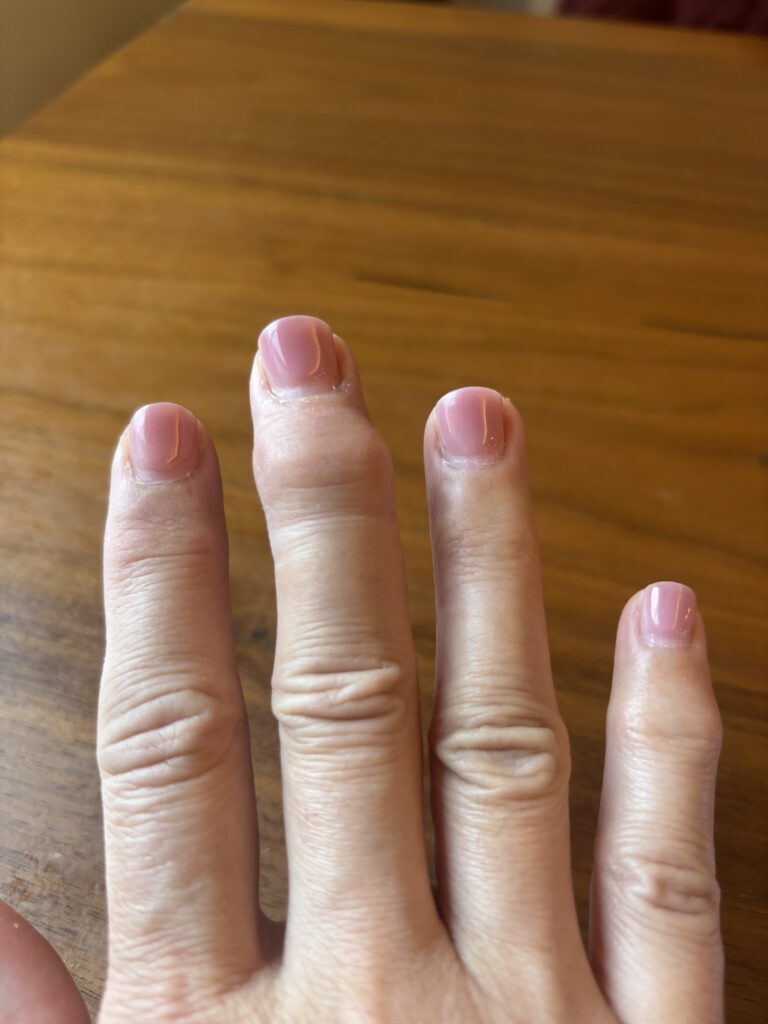 右手の中指に違和感があり、介護士として介助に入ると痛みが走る😖だんだん関節が膨れあがってきて病院へ行きました。診断はへバーデン結節でした😌